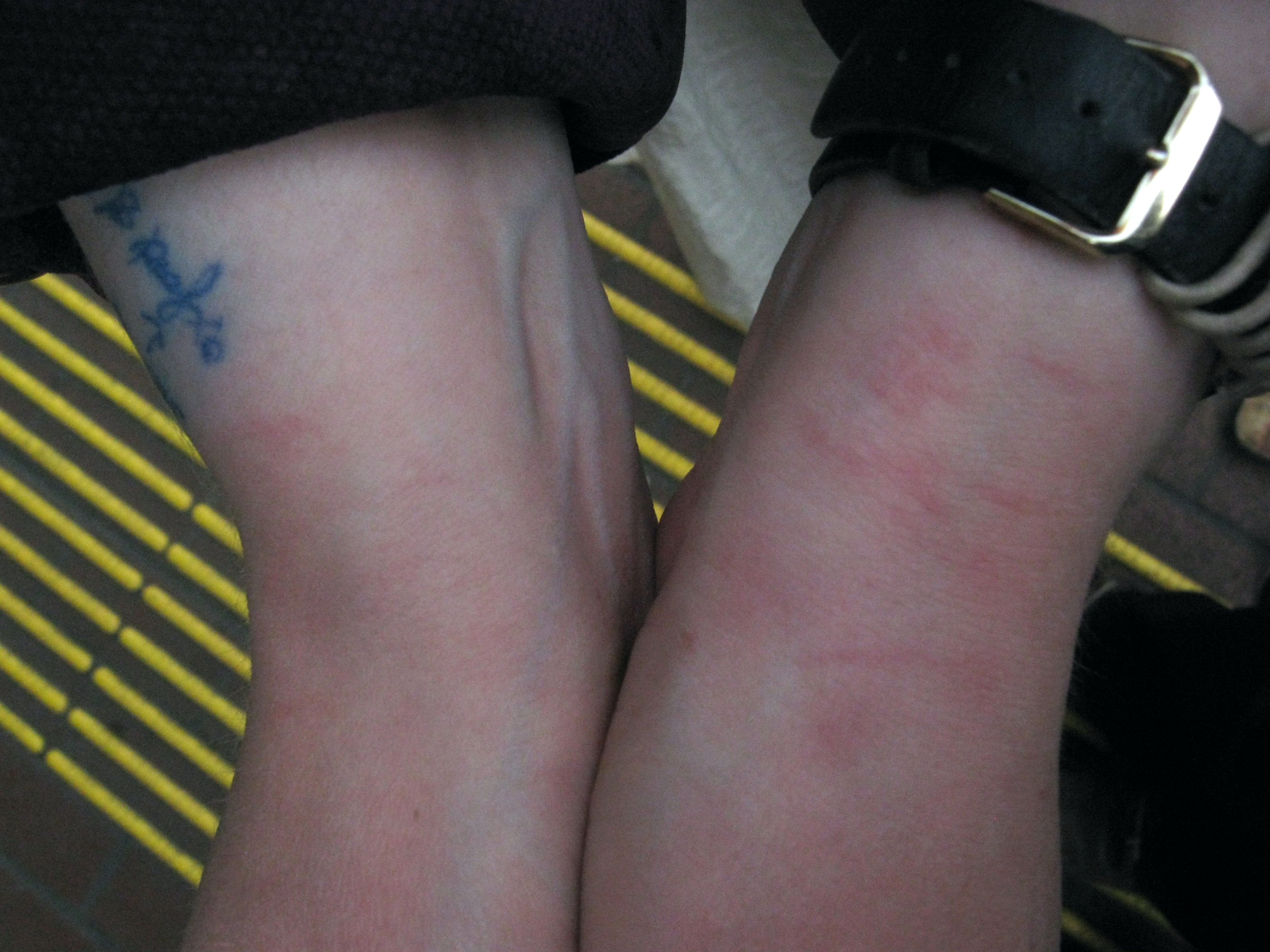 Two and a half hours after the handcuffs have been removed: marks still visible